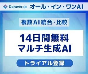 オフィス業務を劇的に効率化させるAIツール :[PR]Doraverse(ドラバース)は、オフィス業務を劇的に効率化させる「オール・イン・ワンAIアシスタント」です。ChatGPT、Gemini、Claude、Grok など、15以上の最新AIをひとつのUIで統合し、チャット、議事録、ワークフロー自動化、クリエイティブ制作、AIエージェントなど、マルチなAIツールが、1つのサブスクリプションで利用できます。