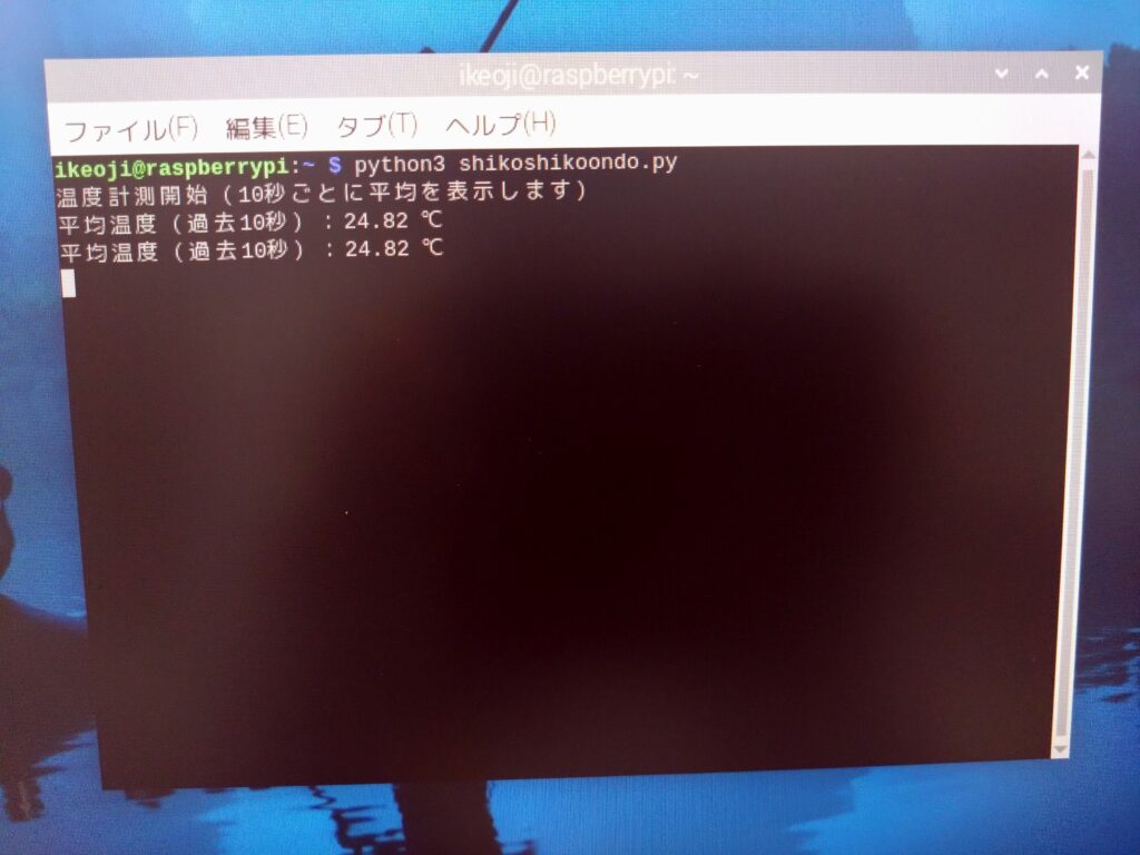 ターミナルに「平均温度」が10秒ごとに表示されれば成功です!